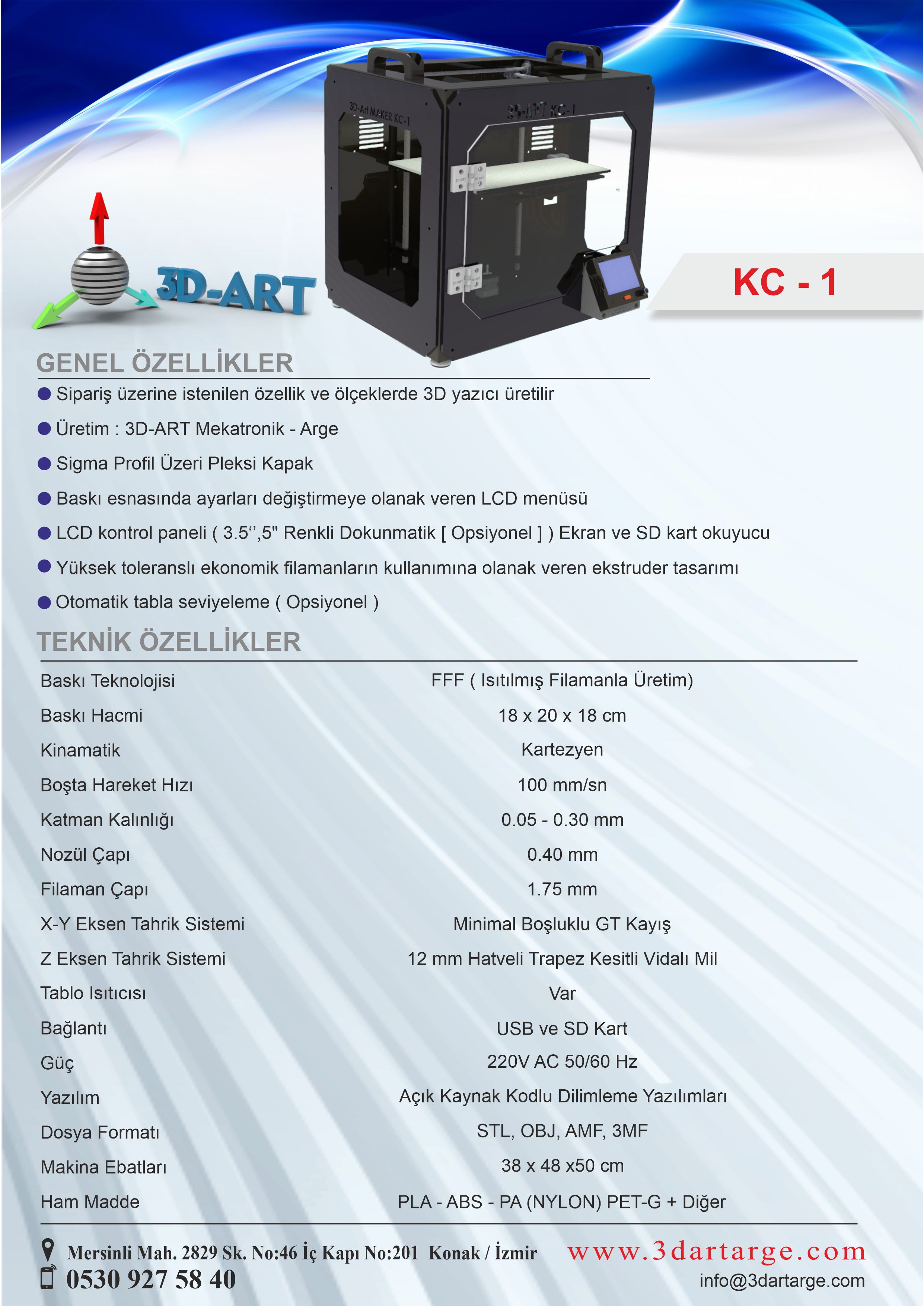 Alanında Uzman teknik ekibimizle baskı öncesinde iletişime geçerek modelinizin 3D baskıya uygunluğunu teyit edebilir ve iyileştirmeler yapabilirsiniz. 3dartarge olarak standartlarımız çerçevesinde sizlere kaliteli bir üretimi garanti ederiz.
